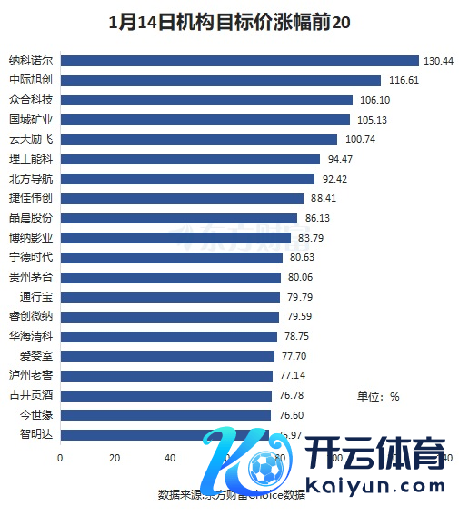 以近一月券商研报为样本,按机构策画价(有多家券商给出策画价的,取最大值)和最新收盘价比较,搁置1月14日收盘,纳科诺尔飞腾空间最大,为130.44%。