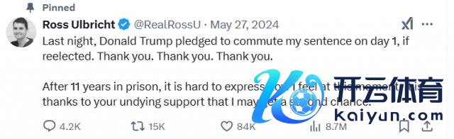 在选举终局后一周,乌布利希曾在外交媒体 X 上发文抒发了对那些代表他投票给共和党的东说念主的感谢,并称,"我降服他(特朗普)会杀青应许,给我第二次契机。在暗淡中渡过 11+ 年后,我终于不错看到地说念绝顶的目田之光。"